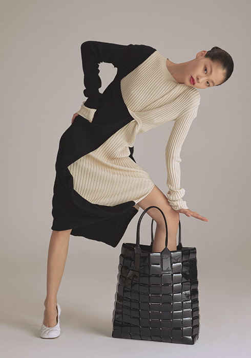 | 그린 시스루 드레스, 베이지 컬러 보디 수트, 레드 부츠, 레드 벨트 백, 멀티컬러 퍼 로고 백 모두 가격 미정 펜디. | 블랙 & 화이트 니트 드레스 4백만원, 흰색 펌프스 1백20만5천원, 블랙 토트백 5백46만원 모두 보테가 베네타. |