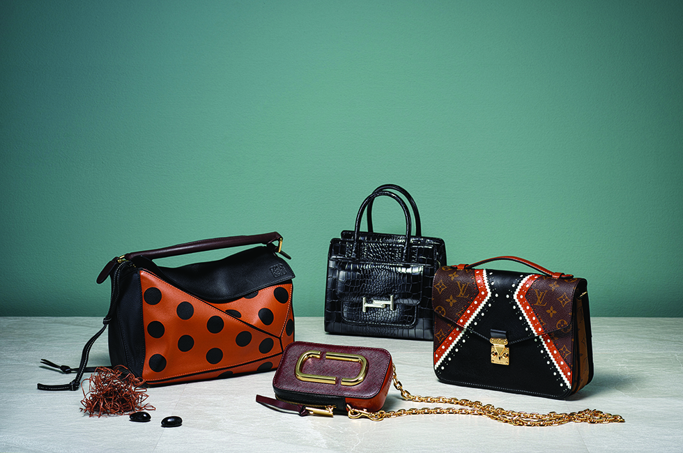 총 43개의 가죽 조각으로 만든 유연한 실루엣이 매력적인 퍼즐 서클 백. 이번 시즌 이 라인에 처음 추가된 도트 무늬의 서클 패턴은 로에베만의 고난도 가죽 공예 기술인 레더 마키트리 기술력으로 완성했다. 28X20cm, 3백90만원대 로에베.
