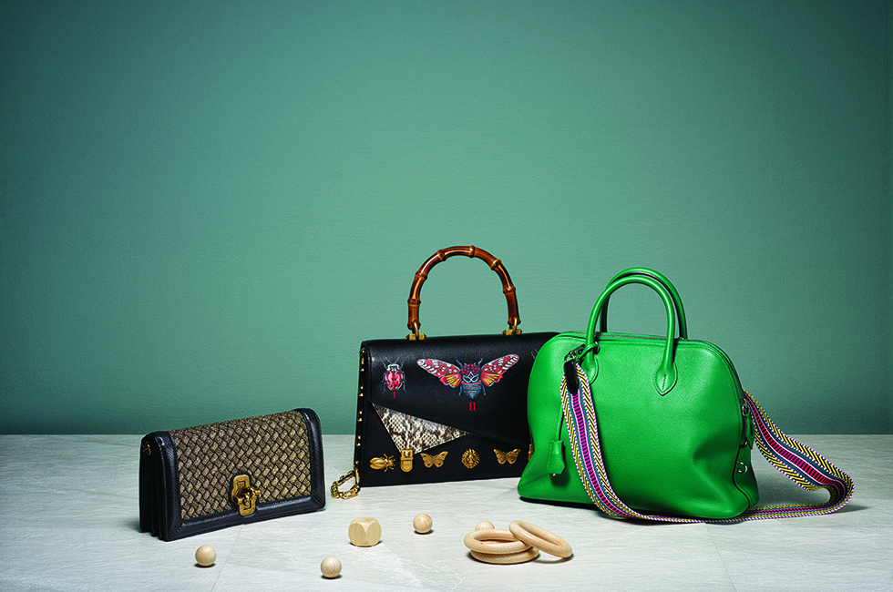 견고한 소가죽과 파이톤 소재의 더블 플랩이 포인트로, 곤충 모티브 메탈 장식과 뱀부 핸들이 어우러진 오띨리아 백. 31X21cm, 5백70만원대 구찌.