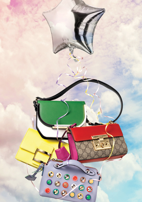 구조적인 셰이프에 그린과 화이트 컬러 블로킹이 돋보이는 미니 숄더백. 19X14.5cm, 2백40만원대 살바토레 페라가모. 트루 레드와 핫핑크 컬러로 경쾌한 포인트를 준 패들락 백. 20X12.5cm, 1백84만원 구찌. 앙증맞은 컬러 스터드 장식이 매력적인 미니 바이더웨이 백. 20x14cm, 2백9만원 펜디. 개나리를 연상케 하는 선명한 옐로 컬러의 비브 마이크로 백. 19X15cm, 2백30만원대 로저 비비에.