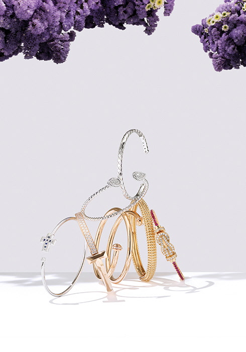 30개의 다이아몬드를 세팅한 18K 핑크 골드 더블 뱅글 브레이슬릿 1천1백20만원. 문의 02-3479-1802