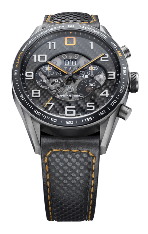 자동차와 시계 또한 밀접한 관계. 스포츠카로 유명한 맥라렌과 오랜 파트너십을 맺은 태그호이어는 맥라렌 MP4-12C에서 영감을 받은 시계를 1천 개 한정판으로 생산했다. 자동차와 동일한 오렌지 컬러를 강조한 카본 파이버 다이얼, 모래 분사 처리로 긁힘에 강한 티타늄 케이스, 자동차 시트에 사용하는 알칸타라 가죽으로 만든 스트랩이 특징적이다. 뒤브아 드프레즈 칼리버 4900을 탑재, 플라이백 크로노그래프 기능도 제공한다.