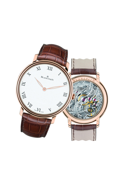 금속에 조각도로 무늬를 새기는 것은 오래된 기법으로, 시계에도 즐겨 사용됐다. 워낙 작은 면적에 하는 작업이라 요즘은 현미경의 도움을 받을 만큼 고도의 노하우가 필요하다. 작업 시간도 오래 걸려서 이니셜, 초상, 풍경을 특별히 넣어달라고 주문하는 고객들에게만 제공되었다. 매뉴팩처 내에 인그레이빙 하는 장인을 둔 블랑팡의 경우도 마찬가지다. 올해 블랑팡은 그 기술을 널리 알리는 빌르레 그랑드 데코라시옹(Villeret Grande Décoration)을 소개했다. 시계 다이얼 부분은 무척 심플하지만 뒷면, 무브먼트 브리지 위에 새긴 섬세한 조각이 특징이다. 중국, 일본, 스위스, 파리, 홍콩 등 5개 국가와 도시의 상징적인 모습을 담았고 각각 1개씩만 제작했다. 고객이 원한다면 서울의 모습도 담을 수 있다.