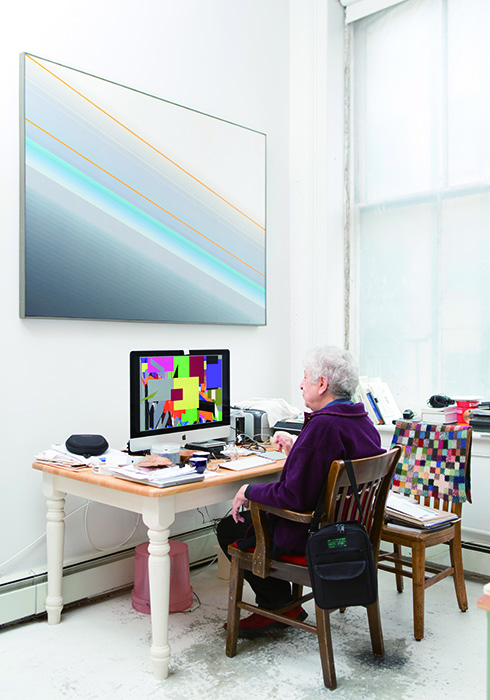 그녀의 작품 세계에서 빼놓을 수 없는 또 한 가지 주요 요소는 ‘컬러’다. 신시내티대(Univ. of Cincinnati)에서 디자인을 공부하던 학부 시절, 왜 일몰은 빨강인지, 왜 하늘은 파란지, 가을이면 나무 색은 어떻게 변해가는지 등 색에 대해 한층 깊이 생각하게 되었다. 또 시간이 갈수록 사미아의 작품 세계를 대변하는 ‘밝은 색감’은 1980년대, 캔버스의 대체제로 ‘AMIAGA’라는 컴퓨터 프로그래밍을 이용해 ‘키네틱 페인팅’을 하던 시기에 떠올리게 됐다. “오일 페인팅을 할 때는 물리적으로 빨리 그리기가 힘든데, 컴퓨터로는 스플래시 효과도 가능하고, 예일대 제자이자 재능 있는 뮤지션인 케빈이랑 즉흥연주도 하면서 여러 가지 새로운 실험을 해볼 수 있었어요. 그런데 2~3년 동안 컴퓨터로 작업을 하다 보니 더 이상 그리기가 싫고 어렵더군요. 어느 날, ‘컴퓨터가 만들 수 있는 색보다 더 밝고 아름다운 색을 직접 그려보자’라는 결심이 섰죠.”