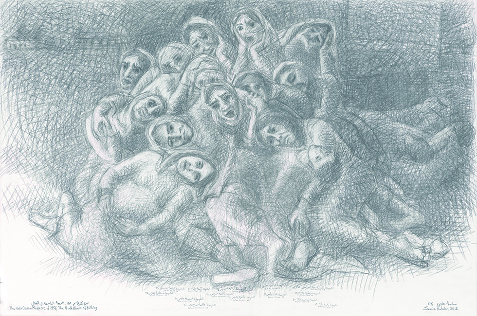 “그렇지만 내게 팔레스타인이란 주제는 중요해요. 지금도 그곳에선 끔찍한 일이 계속 벌어지고 있어요. 정확히 알고 제대로 알려야 합니다.” 팔레스타인의 상징인 올리브나무 시리즈, 카프르 카심 대학살(Kafr Qasim Massacre) 사건을 다룬 드로잉 시리즈 모두 참담한 역사와 현실을 알리기 위해 그린 작품이다. 특히 1956년 이스라엘 군대가 49명의 팔레스타인 민간인을 사살한 비극을 담은 ‘카프르 카심 드로잉’ 시리즈는 사미아가 이례적으로 그린 비(非)추상 작품으로 이 끔찍한 사건의 생존자, 그리고 희생자의 가족을 직접 만나 인터뷰를 진행했을 만큼 마음을 쏟았다. 요즘 사미아는 여전히 제3 세계에 높은 벽을 치는 뉴욕을 제외한 세계 여러 도시에서 크고 작은 전시를 치르고 있다. 전시가 마무리되어도 한숨 돌리기 무섭게 2017년 버전 키네틱 페인팅을 다시 시작해볼 요량으로 독수리 타법을 구사하며 컴퓨터 앞에 앉아 독학하는 날이 대부분. 화수분 같은 뜨거운 에너지를 품은 작가에겐 왠지 꿈이 있을 것 같았다. “팔레스타인 아이들을 위한 재단을 만들고 싶어요. 평생의 바람이에요.” 녹록하지 않은 세월을 아름다운 예술혼으로 성실히 일궈낸 그녀의 첫인상에서 뿌리 깊은 나무가 겹쳐 보인 건 과장된 착각이 아니었다.