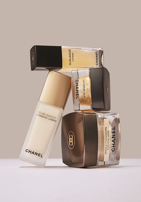 (위부터 시계 방향으로) 수블리마지 렉스트레 15ml 63만8천원, 수블리마지 라 크렘 드 아이 15g 24만6천원, 수블리마지 마스크 50ml 26만5천원, 수블리마지 레쌍스 뤼미에르 40ml 61만3천원, 모두 샤넬 문의 080-332-2700