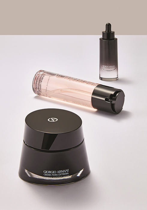 (위부터) 크레마네라 퍼밍 플럼핑 에센스 30ml 38만원대, 크레마네라 아쿠아 판텔레리아 옥시던트 트리트먼트 로션 150ml 19만8천원대, 크레마네라 수프림 리바이빙 크림 50ml 49만원대 모두 조르지오 아르마니.
