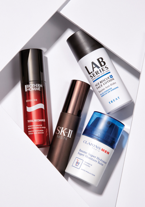 Grooming item for man (오른쪽부터 시계 방향으로) 랩 시리즈 에이지 레스큐 + 훼이스 로션 강력한 인삼 추출물이 주름과 피로의 흔적을 지워주는 안티에이징 에센스. 50ml 6만5천원. 클라란스 맨 수퍼 모이스처 밤 면도 후 자극받은 피부를 진정시키고 수분을 공급한다. 50ml 5만1천원. SK-II MEN 페이셜 트리트먼트 에센스 독자적인 피테라™ 성분이 피부를 맑고 생기 넘치게 해준다. 75ml 9만원대. 비오템 옴므 토탈 리차지 에너지 부스터 모이스춰라이저 인삼 추출물, 카페인, 구아라나의 3중 에너지 복합체가 피부를 개선하는 에센스. 50ml 6만2천원대. Premium beauty(가운데부터 시계 방향으로)샤넬 수블리마지 레쌍스 기존의 수블리마지 기능은 유지하고, 피부 독소 제거 기능을 더해 피부 광채를 실현하는 세럼. 30ml 51만원. 랑콤 얼티밋 뷰티파잉 미스트 로션 10주간 발효 과정을 마친 장미 줄기세포의 생명력을 담은 활성 미스트. 150ml 15만원대. 끌레드뽀 보떼 라 크렘므 탄생부터 각질층으로 올라올 때까지 세포의 일생을 프로듀스한다는 콘셉트로 탄생한 하이엔드 크림. 30ml 68만원. 설화수 자여진에센스 잔주름이 깊고 넓게 뻗어나가는 주름 줄기 현상을 공략한 안티에이징 에센스. 35ml 15만원대.