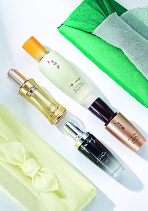 브랜드를 대표하는 성분과 기술력을 담은 스테디셀러이자 베스트셀러 뷰티 아이템. (맨 위부터 시계 방향으로) 피부의 균형을 맞춰주고 생기 있는 윤빛 피부를 선사하는 윤조에센스의 미스트 버전으로 외부 환경 때문에 지친 피부를 더욱 간편하게 케어해줄 윤조에센스 미스트 110ml 7만원대, 적송의 생명력을 담아 어느 각도에서든 매끄럽고 탄탄한 눈가 피부를 선사할 진설 아이 에센스 20ml 27만원대 모두 설화수. 문의 080-023-5454 피부에 닿는 즉시 흡수되어 수분과 영양을 빠르게 채우며 피부 속 단백질을 활성화해 탄력 있는 젊은 피부로 되돌려줄 제니피끄 프로바이오틱스 에센스 75ml 18만9천원대, 랑콤 장미에서 추출한 두 가지 특별 활성 인자를 통해 피부 노화를 개선해줄 압솔뤼 렉스트레 앰플 에센스 30ml 52만원대 모두 랑콤. 문의 080-001-9500 |