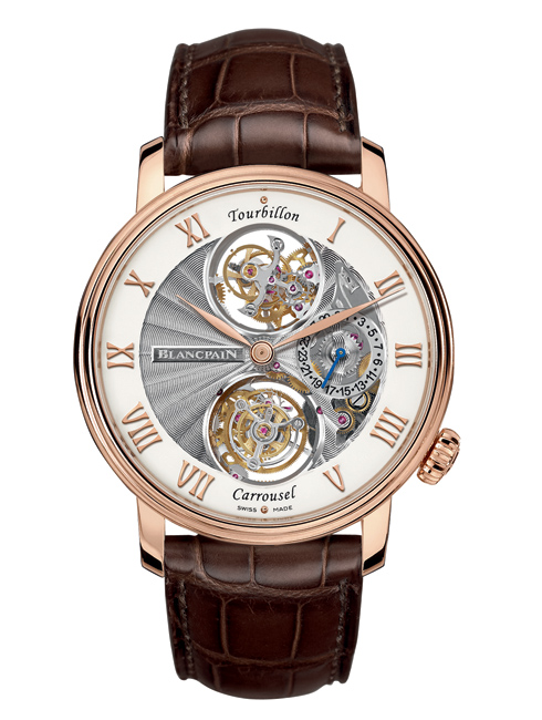 세계에서 가장 복잡한 시계를 만들던 블랑팡. 최고의 기술을 하나의 시계에 집약하는 특유의  컴플리케이션 기술을 집약해 6시 방향에는 플라잉 카루셀을, 12시 방향에는 플라잉 투르비용을 담은, 놀랍도록 복잡한 워치 컬렉션을 선보였다. 무브먼트가 움직이는 동안 발생하는 중력의 오차를 최소화하기 위해 고안한 대표적인 무브먼트다. 비슷하면서도 상이한 2개의 메커니즘이 하나의 다이얼 위에서 아름답게 회전하는 모습은 경이로울 정도다. 2개의 독립적인 캐리지는 두 레귤레이터의 평균율을 계산해 시간으로 전송하는 각기 다른 기어 시스템으로 연결되어 있고, 외부 케이스에서 보이는 용두는 두 배럴을 동시에 와인딩할 수 있도록 설계되어 있다. 시스템적으로 구조가 상이한 카루셀과 투르비용을 하나의 워치에 담기 위해 더 많은 부품과 정교한 작업이 필요했고, 블랑팡의 시계 장인들은 이러한 두 가지 요소를 7일이라는 안정적인 파워 리저브 기능과 함께  정밀하게 하나의 ‘작품?으로 완성했다.