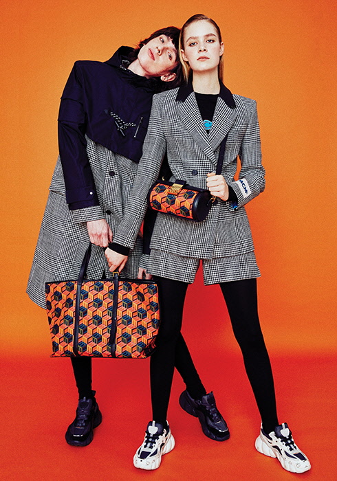 (남자) 남성용 나일론 오버레이 체크 울 코트 1백45만원, 큐빅 로고 자카드 쇼퍼백 99만5천원 모두 MCM.