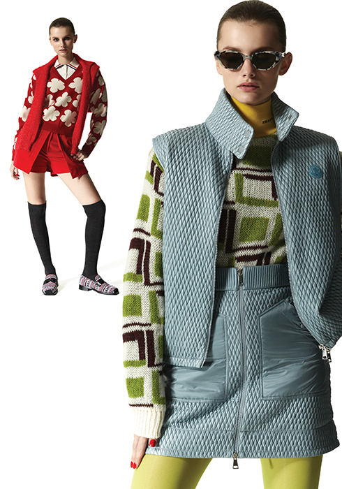 (아래) 캐시미어 & 울 소재 핑크 컬러 베스트 4백20만원대 미우 미우. 나일론 소재의 핑크 컬러 윈드브레이커 18만8천원, 핑크 컬러 터틀넥 풀오버 가격 미정, 폴리에스터 소재의 브라운 컬러 스커트 24만8천원 모두 르 소넷. 스포티한 느낌의 선글라스 37만8천원 프라다 리네아 로사 by 에실로 룩소티카. 보라색 삭스 스타일리스트 소장품.
