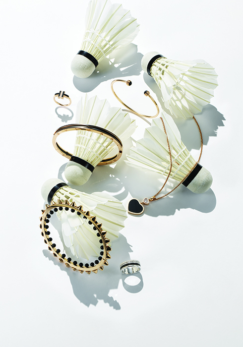 뾰족한 스터드와 둥근 피코 장식의 대립적인 코드가 시선을 끄는 매혹적인 피스. 핑크 골드 소재를 메인으로 삼고 블랙 오닉스를 포인트로 장식해 강렬한 개성과 자유로움을 담아냈다. 2천7백만원. 문의 1566-7277