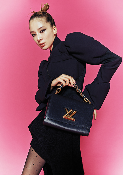 비스코스 소재의 블랙 컬러 페플럼 재킷 가격 미정 톰 포드. 블랙 컬러 페플럼 스커트 가격 미정, 소가죽 소재의 블랙 컬러 백 6백20만원 모두 루이 비통.
