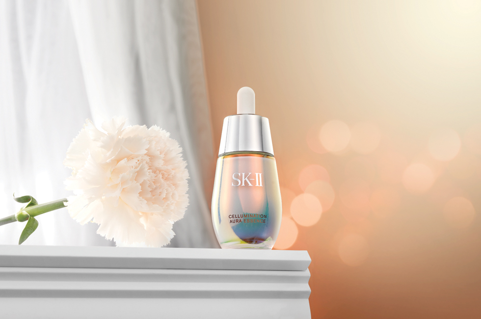 SK-II 연구소는 앞서 설명한 유리 입자를 깨우기 위한 각고의 노력 끝에 첨단 테크놀로지를 반영한 특별한 복합 성분인 ‘블루밍 오라 브라이트 칵테일’을 개발했다. 브랜드의 상징인 농축 피테라TM의 파워를 기반으로 한 이 성분은 새로워진 플라워링 플럼 블러섬 추출물에 디-멜라노 P3Cⓡ, 픽셀 브라이트TM를 더한 것으로, 특히 플라워링 플럼 블라섬 추출물은 피부 내면의 유리 입자를 깨워주는 데 가장 효과적이라고. 임상 실험 결과에 따르면 잠들어 있는 유리 입자를 자극해 빛의 산란을 55.4%로 증가시켰다는 것을 확인할 수 있었다. 아무리 광채가 난다고 해도 잡티가 있다면 칙칙한 빛이 섞여 있는 법. 디-멜라노 P3Cⓡ가 깨끗한 빛을 방해하는 멜라닌과 불순물을 말끔하게 해결해 투명한 마무리를 돕는다. 첫인상은 기존의 셀루미네이션 에센스라고 해도 믿을 만큼 보틀의 형태와 이름이 비슷하지만, 직접 써본 이들이라면 달라진 포뮬러에 한 번, 흡수력에 또 한 번 놀랄 듯. 우유처럼 부드러운 질감인데 스포이트로 얼굴에 떨어뜨리면 점성이 높아 쉽게 흐르지 않고 쫀쫀하게 붙어 있다. 이는 독자적인 테크놀로지로 완성된 리퀴드 에몰리언츠와 페네트레이션 부스터를 담아 피부 침투율을 높였다고 하는데, 실제로 몇 번만 두드리면 잔여감 없이 흡수되어 매끈한 윤기를 느낄 수 있을 것이다. 또 심신을 편안하게 하는 데 도움을 주는 제라늄과 백단유, 그린 만다린 등 내추럴 식물 추출물이 어우러진 순한 로즈 향으로 완성도를 높였다. 셀루미네이션 오라 에센스를 사용한 25세부터 55세까지 여성들의 피부를 파악한 결과 일주일 사용 후 95%가 피부가 밝아진 것을 느꼈고, 1병 사용 후 80%가 맨 얼굴이 화사하고 투영해져 피부 내면에서부터 활짝 피어나는 빛을 느꼈다고 밝혔다. 세안 후 토너로 피부를 정돈하고 스포이트 한 번 정도의 양을 덜어내 얼굴 전체에 펴 바르는데, 기미나 주근깨 등 잡티가 신경 쓰이는 부위에는 2~3번 덧발라 가볍게 두드려주면 코팅한 듯 매끈한 광이 생긴다. 외출 시에는 SK-II ‘셀루미네이션 데이 서지 UV’와 함께 사용하면 자외선을 철통 방어해 눈부시게 빛나는 완벽한 블루밍 스킨이 완성된다. 30ml 17만원대. 문의 080-023-3333