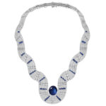파란색 꽃송이와 구슬을 엮은 볼드한 네크리스 85만원
