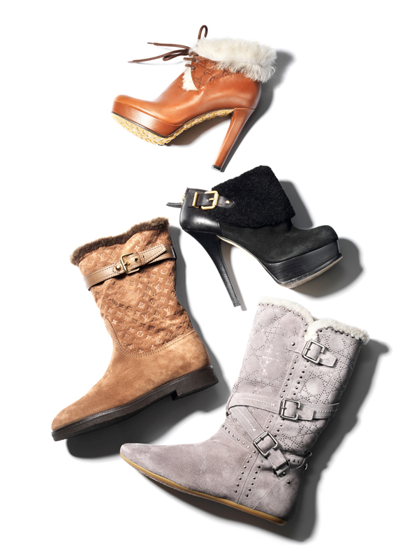 찬바람이 불고 코끝이 시린 한겨울에는 따뜻한게 최고다. 마음은 매끈한 스틸레토 힐로 향해 있지만 결국 편안하고 따뜻한 신발에 발을 밀어 넣게 된다면 퍼 트리밍 부츠가 제격일 듯. 루이비통을 비롯한 구찌, 디올은 자신들의 시그너처 패턴과 로고로 브랜드 아이덴티티를 드러냈으며, 버클 장식으로 모던함을 강조했다. 털과 환상의 짝꿍을 이루는 소재는 바로 스웨이드. 따뜻하고 포근한 느낌의 퍼와 부드러운 스웨이드가 만났으니 이들의 궁합은 불보듯 뻔하다. 게다가 털 장식 부츠는 겨울에만 즐길 수 있을 만큼 추운 날에 더욱 빛을 발할 것이다.