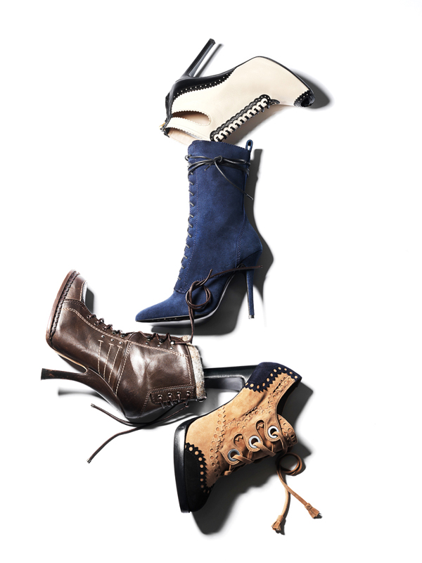 앞이나 옆에서 끈으로 묶는다는 뜻의 레이스업 부츠는 밋밋한 옷차림은 세련되게, 여성스러운 룩은 쿨하게 변신시키는 힘이 있다. 2011 F/W 컬렉션에서도 레이스업 부츠의 활약이 대단했는데, 디올에서 마지막 쇼를 선보인 갈리아노는 시폰 드레스와 승마 팬츠 등 대부분의 룩에 마무리했으며 디스퀘어드의 딘앤딘은 피겨 스케이트 슈즈를 연상시키는 레이스업 부츠로 파워풀한 웨스턴 룩을 완성했다. 모스키노와 마크 제이콥스, 조셉 알투자라 역시 레이스업 부츠의 매력에 푹 빠진 디자이너들. 특히 속이 훤히 비치는 시스루 톱에 아방가르드한 스커트를 매치한 뒤 카키색 점퍼를 걸친 알투자라의 스타일링은 참고할 만하다.