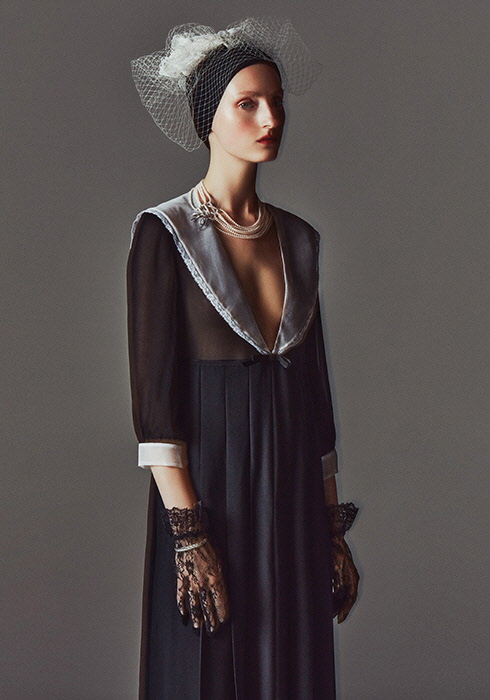 블랙 레이스 글러브는 앤티크 소품으로 웨딩드레스 디자이너 이명순 소장품.