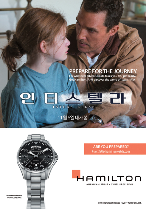LA에서 해밀턴의 저력이 대단하다고 느낄 수 있었던 또 하나의 이슈는 올해 영화계를 가장 뜨겁게 달군 <인터스텔라>와 조우한 해밀턴 워치의 멋진 모습 때문이었다. 비하인드 더 카메라 어워즈 행사와 더불어 <인터스텔라>를 배급한 파라마운트 극장에서 해밀턴 관계자를 초청해 <인터스텔라>를 상영하는 시간을 가졌는데, 영화를 만든 스태프들도 영화에서 시계라는 모티브가 얼마나 중요한지, 해밀턴이 영화에 대한 이해도가 얼마나 높은 브랜드인지에 대해 칭찬을 이어갔다. 감독과 프로듀서 모두 해밀턴이 <인터스텔라>를 위해 많은 노력을 기울여주었다고 입을 모았다. 한국에서 1천만 명에 육박하는 관객을 동원한 이 블록버스터에서 해밀턴 워치는 ‘주인공’이라 할 만큼 중요한 역할을 하는데, 이러한 드라마틱한 장면에 해밀턴이 등장할 수 있었던 것은 영화계와 매우 긴밀하고 오랜 인연을 지속해왔기 때문이다. 스탠리 큐브릭의 미래 영화 <2001 스페이스 오딧세이>부터 <나는 전설이다>, <맨인블랙> 3부작, <다이하드>, <인터스텔라>까지 함께한 영화의 이름을 열거하자면 끝이 없다. 시선을 사로잡는 스타일과 시계에 대한 현대적인 해석이 해밀턴을 매력적으로 만드는 요소다. 단지 돈을 앞세워 후원하는 브랜드라면 이렇게 다양한 방면에서 멋지게 브랜드를 알리기 어려웠을 것이라 생각한다. 영화의 가치를 높이고 많은 사람들에게 감동을 주는 모든 영화 속 장면 제작을 위해 기여한 스크린 밖의 뛰어난 스태프들에게 찬사를 보내는 해밀턴의 젠틀한 태도는 시계와 영화 산업을 더욱 풍성하게 만들었다. 2015년 새로운 영화에서 해밀턴 시계를 발견한다면 영화 산업과의 돈독한 관계를 떠올리며 응원의 박수를 보내고 싶다.