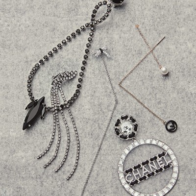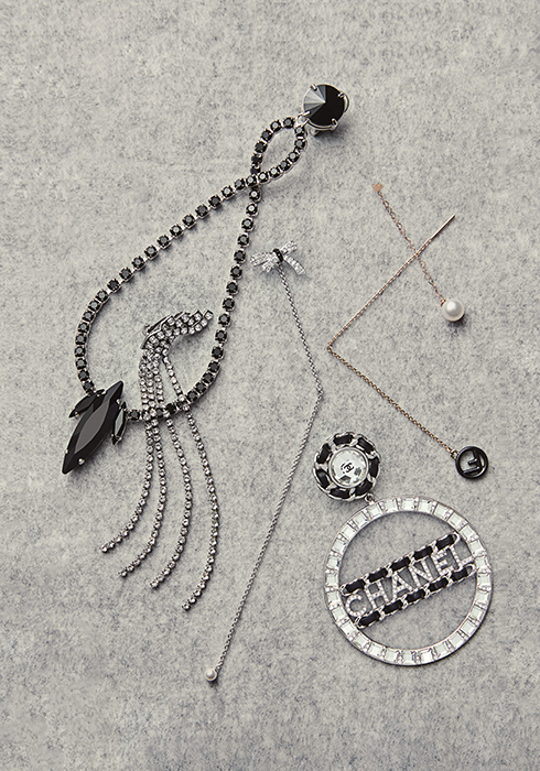 (위부터 시계 방향으로) 크리스털 장식 이어링 50만원대 미우미우. 진주가 달린 아모르스터드 이어링 50만원 골든듀. 로고 펜던트 롱 체인 이어링 39만원 펜디. 가죽과 크리스털로 장식한 메탈 클립온 이어링 1백50만원대 샤넬. 리본 모티브에 파베 크리스털을 세팅한 드롭 이어링 16만5천원 스와로브스키. 투명한 크리스털로 이루어진 클립 이어링 21만5천원 스와로브스키. 계속 읽기