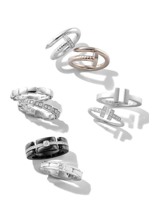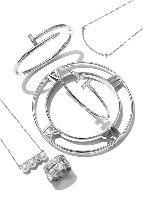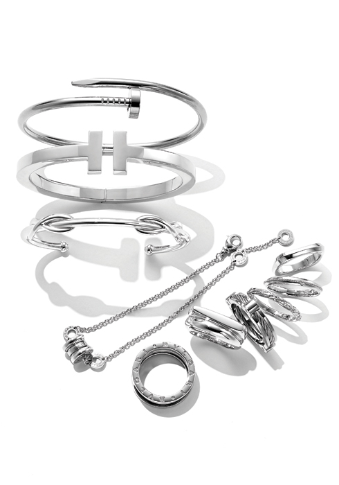 (왼쪽 위부터 시계 반대 방향으로) 화이트 골드로 못 모티브를 표현한 저스트 앵 끌루 브레이슬릿 8백70만원대 까르띠에. 볼륨감이 느껴지는 티파니 T 컬렉션 화이트 골드 브레이슬릿 가격 미정, 실버로 정교한 꼬임을 완성한 뱅글 70만원대 모두 티파니. 불가리 더블 로고 를 더한 비.제로원 컬렉션 브레이슬릿과 3-밴드 링. 각 2백만원대 모두 불가리. 원형과 사각형을 결합해 웨이브를 완성한 석세스 스몰 링 2백만원대, 꼬임 디테일을 더한 포스텐 윈치 링 2백만원대 모두 프레드. 장미의 꽃잎과 줄기를 표현한 피유 링, 장미 꽃봉오리를 금속 볼로 표현한 브루종 링 각 1백만원대 모두 루시에. 골드 스퀘어 꾸 드 푸드르 화이트 골드 웨딩 링 1백만원대 프레드. 에디터 배미진 계속 읽기