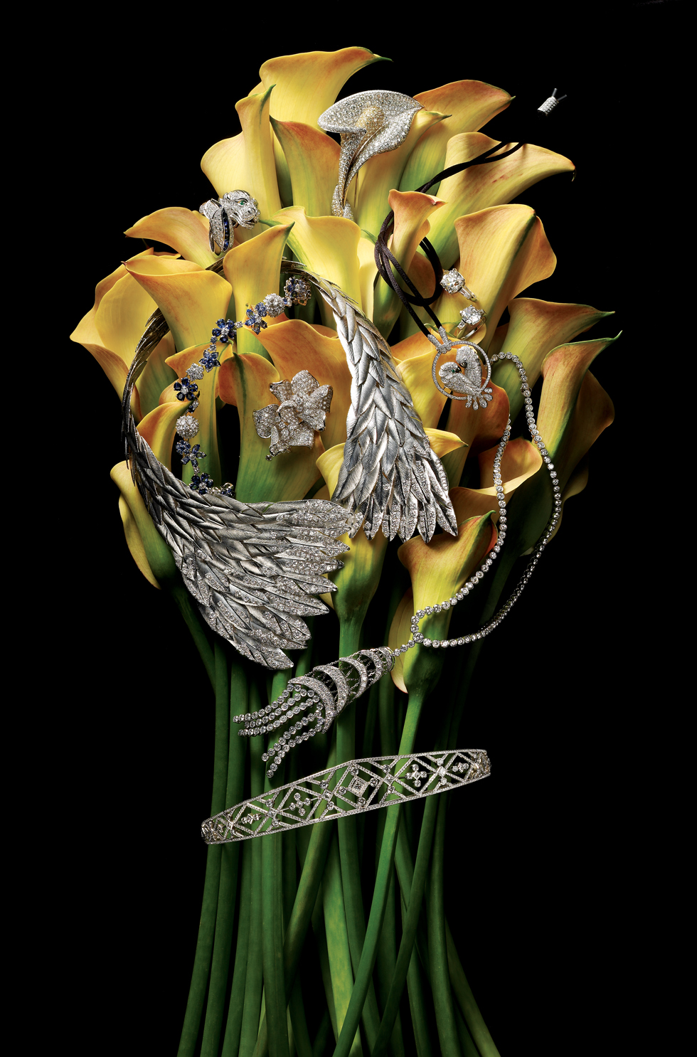 생명력 넘치는 꽃 속에서 더욱 빛나는, 오랜 역사와 고귀한 원석으로 완성한 하이 주얼리 컬렉션. 부쉐론. 청초한 릴리의 아름다움을 표현한 아룸 브로치. 화이트 골드와 옐로 골드에 다이아몬드를 세팅했다. 불가리. 볼륨감 넘치는 불가리의 다이아몬드 하이 주얼리 링 두 가지. 위의 제품은 플래티넘 소재에 5.25캐럿 쿠션 컷 다이아몬드 양옆으로 바게트 컷 다이아몬드를 세팅했다. 아래 제품은 플래티넘 소재에 3.01캐럿 쿠션 컷 다이아몬드를 세팅한 제품. 계속 읽기