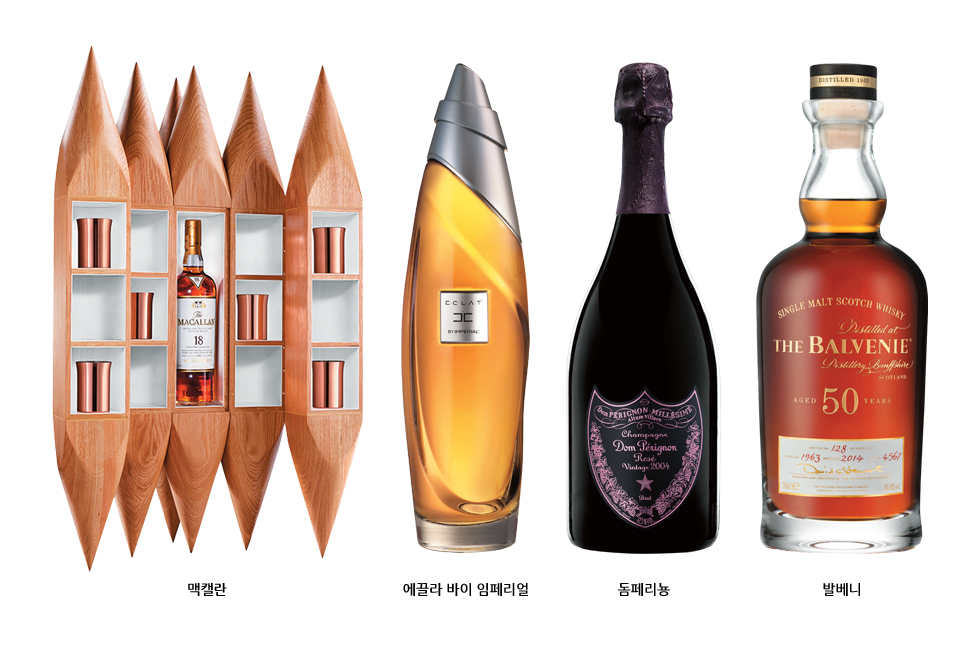 갈수록 경쟁이 치열해지는 주류업계가 꾀하는 변신의 노력이 눈물겹도록 다채롭다. 새로운 차원의 서비스나 상품으로 각자의 영역에서 ‘참신함’, ‘희소성’ 같은 단어를 붙일 만한 특색을 내세워 소비자의 마음을 사로잡기에 여념이 없다. 아트 컬래버레이션은 그런 시도를 보여주는 좋은 예다. 싱글 몰트위스키 브랜드 맥캘란은 김병호 작가와 ‘관계’를 주제로 한 아트 프로젝트를 진행했다. 백참나무,적동 도금,네오디뮴 자석 등 다양한 소재를 활용한 ‘Twelve Inter-faces’, 그리고 영국 소설가 존 윈덤의 작품에 등장하는 식물 괴수 이름을 차용한 ‘Black Trif-fid’다. 또 다른 싱글 몰트위스키 브랜드 발베니는 전 세계 1백28병만 생산한 ‘발베니 50년’으로 최상의 품질과 희소성을 부각했다. 서울 장충동 신라 호텔에서 한 달간 일반에 공개하는 이 특별한 위스키는 ‘캐스크 4567’과 ‘캐스크 4570’인데, 둘 다 1963년 같은 날 같은 증류소에서 동일한 종류의 오크 통에 담겨 50년간 숙성된 원액으로 만들었다고. 판매가는 발베니 50년 2병 한 세트에 1억원. 조니워커에서는 전설적인 마스터 블렌더를 앞세워 고객의 취향에 따른 맞춤형 위스키 제작 서비스인 ‘시그너처 블렌드(Signature Blend)’를 선보였다. ‘나만의 리미티드 에디션’을 만들어주는 일종의 비스포크 서비스가 프리미엄 위스키의 세계에도 도입된 셈이다. ‘조니워커 블루 레이블’의 창시자인 짐 베버리지가 서울 조니워커 하우스에서 고객과 마주 앉아 취향을 꼼꼼히 분석하고 시음해가면서 ‘1인’을 위한 위스키를 만들어주는 서비스를 손수 제공하기도 했다. 돔페리뇽은 섬세한 피노 누아 품종의 매력을 한껏 살린 ‘로제 빈티지 2004’를 내놓았다. 피노 누아를 중심으로 한 전례 없는 배합을 시도했지만 와인 전체가 압도당하지 않도록 균형감을 살리는 까다로운 작업의 소산이다. 또 여성을 위한 스피릿 드링크라는 차별성을 내세운 ‘에끌라 바이 임페리얼(Eclat by Imperial)’은 임페리얼 브랜드의 파격적인 변신이라는 점에서 흥미롭다. ‘여성의 과일’이라 불리는 석류 향을 가미한 위스키로 알코올 도수를 31도로 낮췄는데, 향수병 같은 분위기의 패키징도 돋보인다. 계속 읽기