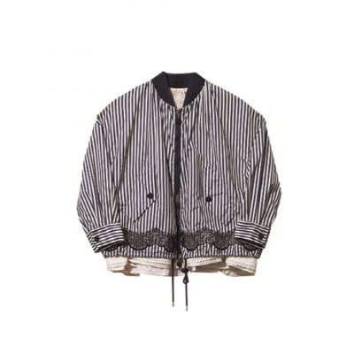 화이트 프릴 디테일로 두 가지 옷을 레이어링한 것처럼 보이는 스트라이프 보머 재킷 2백6만원 몽클레르. 계속 읽기 →