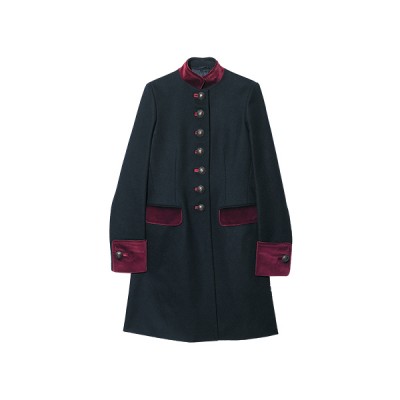 레드 벨벳과 골드 버튼으로 포인트를 준 코트 가격 미정 페이. 계속 읽기 →