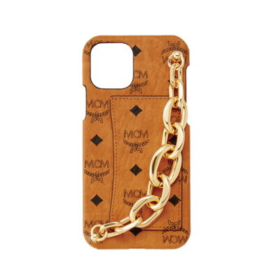 체인 장식 핸들과 카드 슬롯 포켓을 장착한 휴대폰 케이스 25만5천원 MCM. 계속 읽기 →
