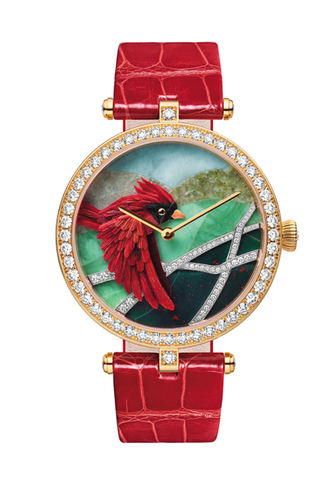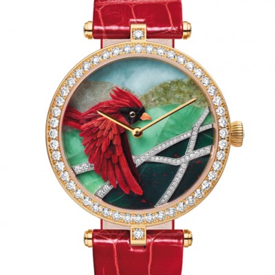 반클리프 아펠은 미니어처 페더 아트와 스톤 세팅 기술로 새의 아름다움을 표현한 ‘엑스트라오디네리 다이얼 컬렉션’을 선보인다. 핸드 와인딩 매케니컬 무브먼트를 장착한 22개의 리미티드 에디션 워치에는 스톤 마키트리 기법으로 행운과 사랑을 상징하는 새의 모습들이 장식되어 있다. 실제 깃털을 사용해 정교하고 생동감 넘치는 풍경을 다이얼에 담았다. 진홍색, 남색, 하늘색 등 3가지 컬러로 구성된다. 계속 읽기