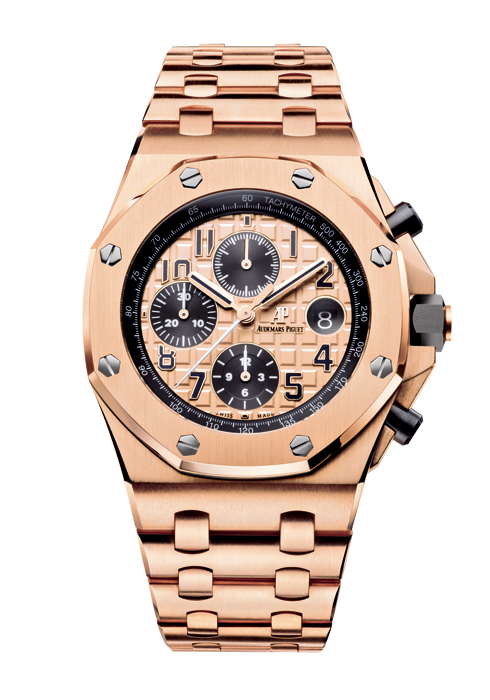 오데마 피게에서 ‘로열 오크 오프쇼어’를 선보인다. 핑크 골드의 다이얼과 케이스, 팔각형 베젤이 견고하면서도 고급스러움을 자아낸다. 크라운과 푸시 버튼을 스크래치에 강한 블랙 세라믹으로 제작한 것이 특징이며 숫자 인덱스와 크로노그래프 카운터, 야광 코팅 처리한 날짜창으로 가독성을 높였다. 계속 읽기