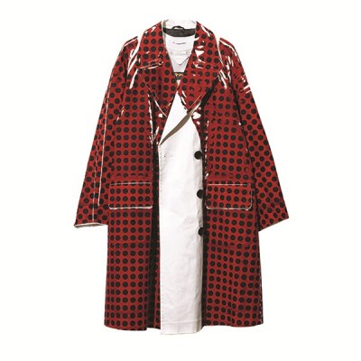 광택감이 돋보이는 도트 프린트가 그려진 레인코트 3백30만원대,