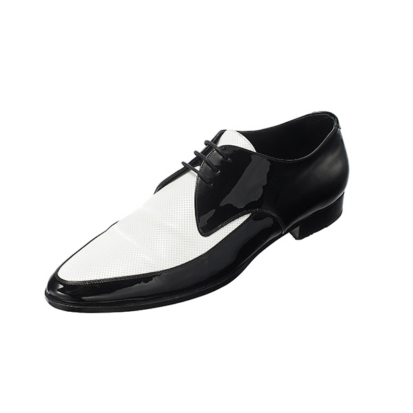 페이턴트 가죽과 스무스 가죽의 조합이 멋스러운 마르소 더비 슈즈