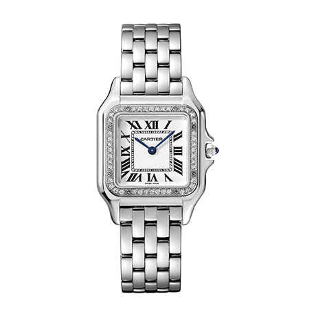 까르띠에는 스틸 케이스에 다이아몬드를 세팅한 합리적인 가격대의 ‘팬더 드 까르띠에 주얼리 워치’를 선보인다. 미디엄과 스몰, 2가지 모델로 만나볼 수 있으며, 유연한 브레이슬릿이 손목 위에 우아한 아름다움을 연출해준다. 오리지널 팬더 드 까르띠에 워치를 화려하게 재해석한 이 주얼리 워치는 다이아몬드의 반짝임과 어우러져 세련된 품격을 선사한다.