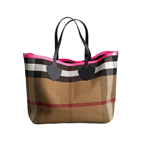 버버리 자이언트 캔버스 체크 가죽 리버시블 토트