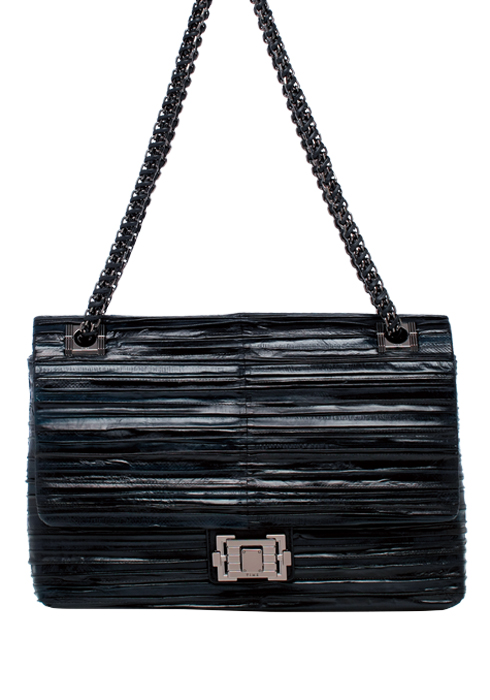 타임에서 새로운 시즌을 맞아 체인 숄더백 라인인 ‘타임 그레이스 백’을 장어가죽으로 선보인다. 세로 방향의 장어가죽 텍스처로 볼륨