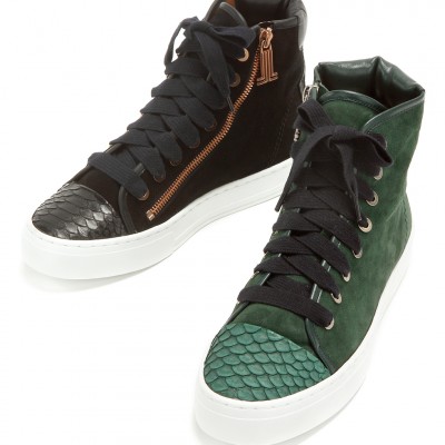 랑방 컬렉션에서 2012 F/W 시즌을 맞아 하이톱 스니커즈를 선보인다. 사이드 안쪽에 볼드한 금색 지퍼가 달려 있어 신고 벗기 편리하며, 가죽과 스웨이드의 매치가 세련된 느낌을 준다. 신발 앞코에는 파이톤 패턴으로 포인트를 더했다. 문의 02-3416-2440 계속 읽기