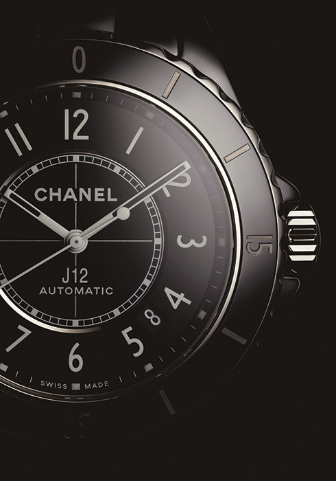 샤넬의 아티스틱 디렉터 자크 엘뤼가 고안한 J12는 국제 요트 대회 아메리카스컵의 12m급 J 클래스 레이스에 참가한 요트의 실루엣에서 영감을 얻은 것으로, 모델명 역시 여기에서 따왔다. 타임리스하고 스포티한 디자인의 올 하이테크 세라믹 워치는 2000년 블랙 컬러로 처음 선보인 이래 2003년 화이트 버전으로 출시, 이후 세월의 흐름에 따라 다양한 컴플리케이션과 디자인을 선보이며 크게 사랑받았다. 올해 출시 20주년을 기념해 선보인 뉴 J12 컬렉션은 새로운 셀프 와인딩 무브먼트를 탑재한 것이 특징. 투명한 크리스털 케이스 백을 통해 확인할 수 있는 칼리버 12.1은 스위스 시계 제작업체인 케니시(KENISSI) 매뉴팩처에서 개발한 것으로, 오실레이팅 웨이트를 디자인한 샤넬의 크리에이션 스튜디오와 긴밀한 협업을 거쳤다. 한편 미세하지만 더욱 정교하게 다듬어 완벽에 가까워진 디자인 역시 눈에 띈다. 베젤을 키우고 다이얼의 숫자와 인덱스 폰트를 조정해 가독성을 높였고, ‘스위스 메이드’ 문구 위치를 플랜지로 내려 정돈된 느낌이 든다. 또 카보숑 컷 세라믹으로 장식한 크라운을 3분의 1 크기로 줄여 크라운 가드와 부드럽게 이어지도록 했다. 케이스는 이전보다 약간 두껍게 조정했지만, 시계 측면 라인을 안으로 더욱 둥글린 덕분에 큰 차이는 느껴지지 않는다. 컬렉션을 구성하는 모든 모델의 케이스는 지름 38mm 사이즈로 화이트, 블랙 세라믹 기본 모델을 비롯해 다이아몬드 인덱스 버전, 올 블랙(누아르), 올 화이트(팬텀) 에디션, 다이아몬드를 풀 파베 세팅한 유니크 피스와 리미티드 에디션 등 다채로운 라인업으로 전개한다.