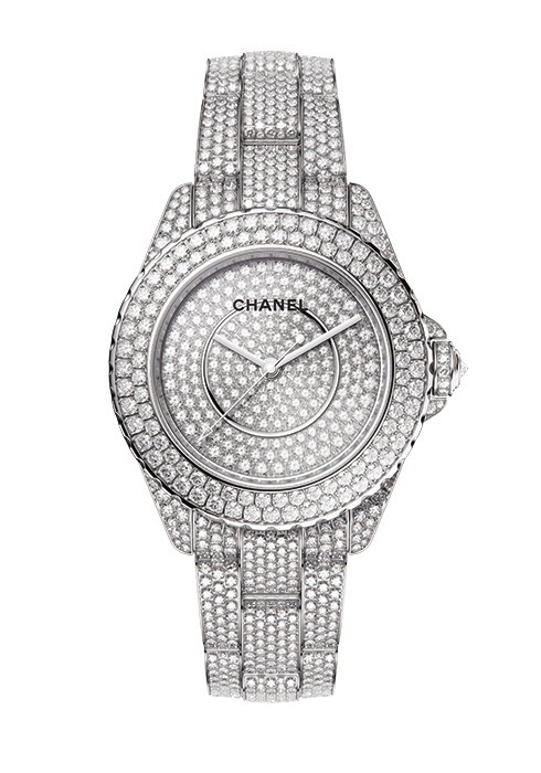 7 시계 전체에 19.27캐럿의 브릴리언트 컷 다이아몬드를 파베 세팅한 리미티드 에디션 J12.