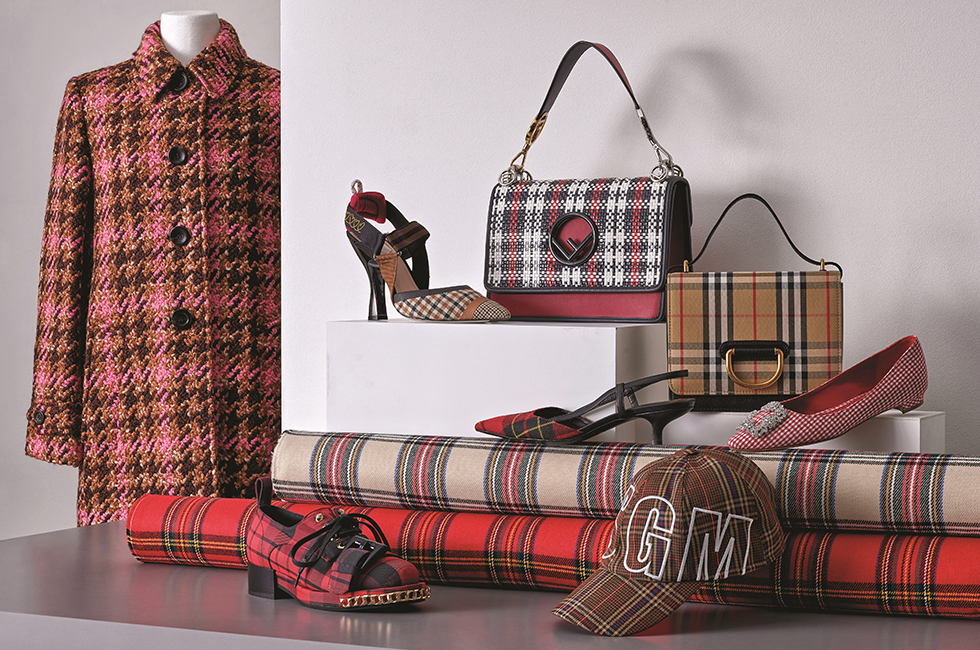 다양한 체크 패턴으로 포인트를 준 스틸레토 힐 1백35만원, 레드 컬러를 믹스한 타탄체크가 돋보이는 캔아이 백 18X25cm, 2백99만원 모두 펜디.