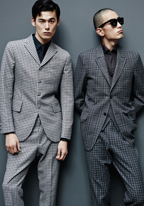 (왼쪽) 라이트 그레이 체크 수트 가격미정, 딥 그린 셔츠 가격미정, 네이비 타이 가격미정 모두 Z 제냐. |