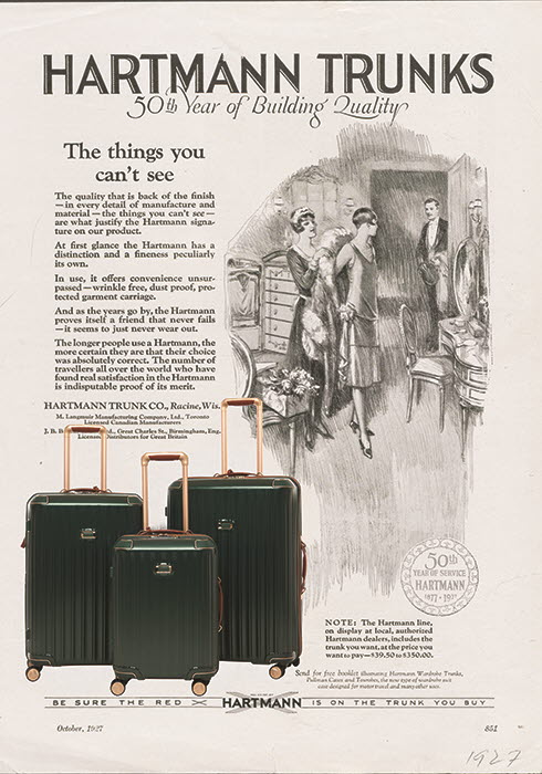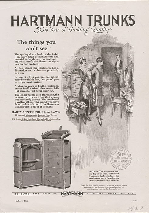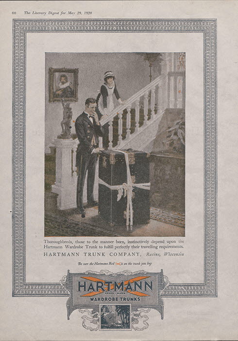 하트만의 1920년 워드로브 트렁크 광고 캠페인.