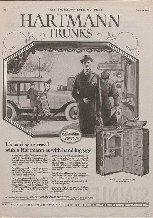 하트만의 1925년 워드로브 트렁크 광고 캠페인.
