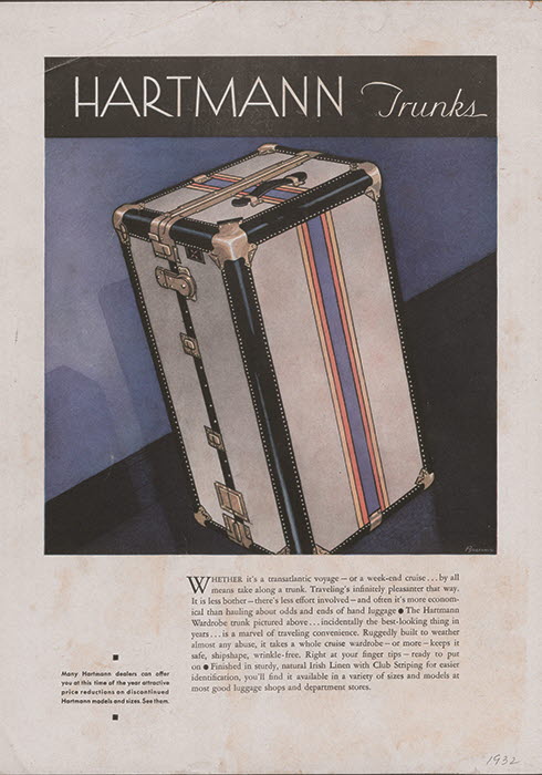 하트만의 1932년 워드로브 트렁크 광고 캠페인.