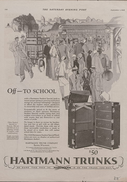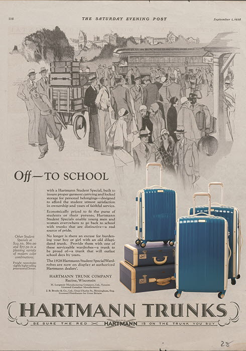 하트만의 1928년 워드로브 트렁크 광고 캠페인.