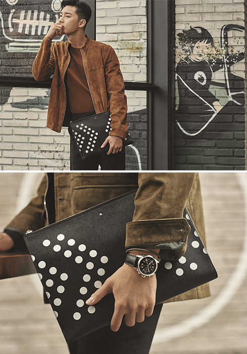 견고한 레더 위에 프린트된 경쾌한 도트 패턴, 몽블랑과 박서준이 만나 완성한 몽블랑 X PSJ 캡슐 컬렉션.