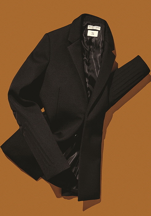 블랙 & 화이트로 이루어진 모노크롬 코드가 그 어느 때보다 강세다. 그중 어느 아이템이든 매치하기 쉬운 칠흑 같은 어둠을 뜻하는 젯 블랙 컬러 재킷이 대세를 이루는데, 디자이너들은 그래픽적이고 조각적인 테일러링과 디테일을 통해 블랙 컬러 내에서 섬세한 변화를 유도했다. 소맷단에 엠보싱 효과를 더해 재미를 준 울 재킷 3백79만원 보테가 베네타. 문의 02-3438-7682