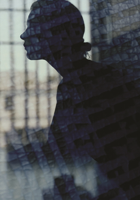 모델의 실루엣이 비친 액자 속 그림은 한국 단색화의 거장 정상화의 ‘Untitled 無題 2008-3-7’(2008).